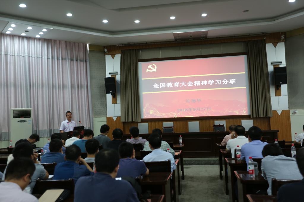 2018年9月27日下午15时30分,信息工程学院党委书记许德华在八角楼会议室为全院教职工做全国教育大会精神的学习分享。