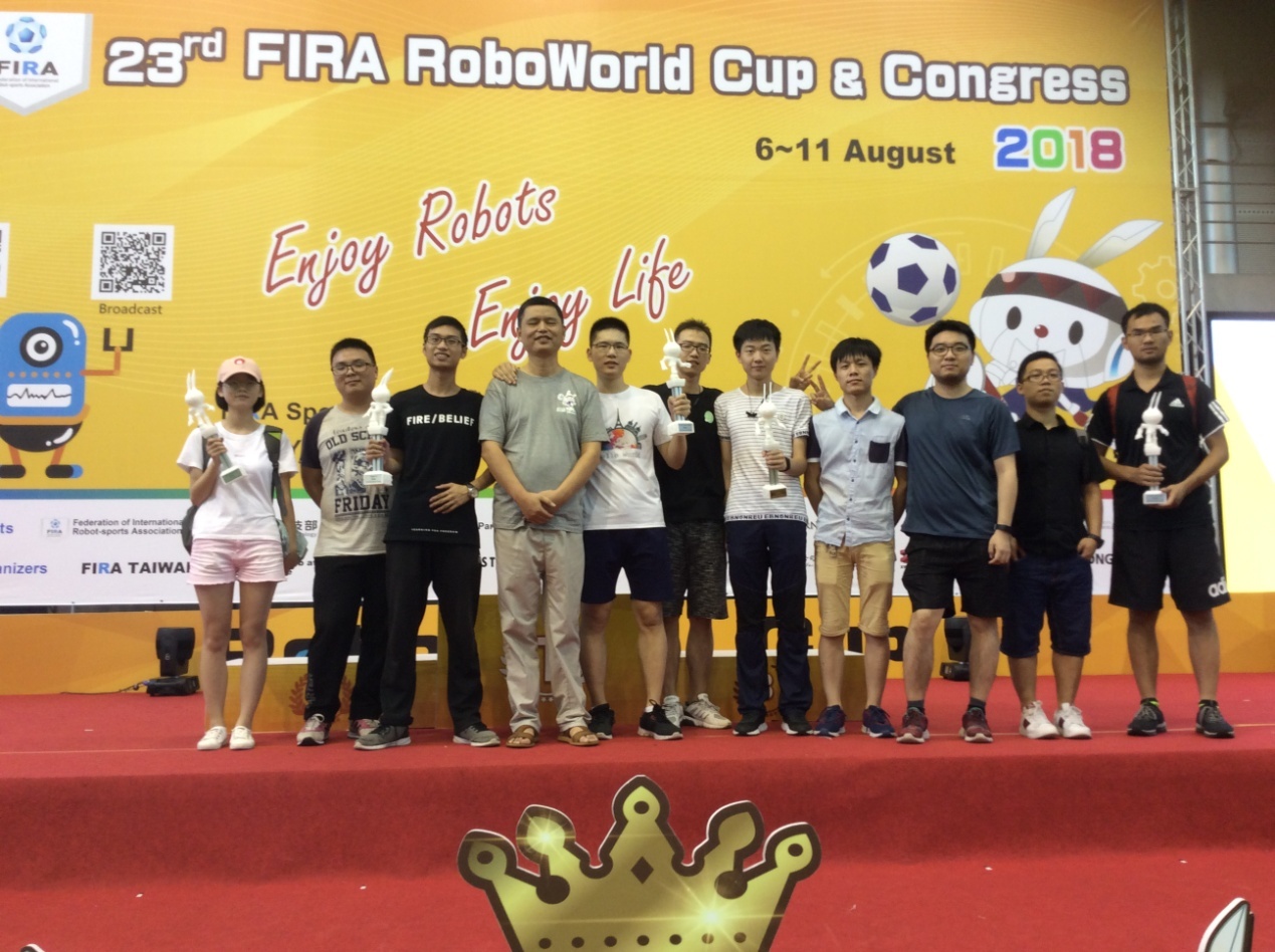 (武汉)CUG机器人队参加了本次大赛,取得飞行机器人救援、飞行机器人竞速、仿真机器人避障、飞行机器人仿真4项亚军和大场地仿真机器人足球季军的优异成绩。