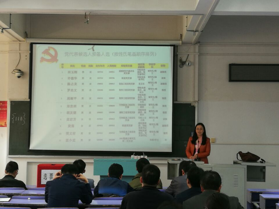 会议伊始,黄老师介绍了本次大会的主要议题,向学院党员介绍了田玉刚等11位党代表候选人。候选人中,唯一的一位学生党员叫霍少孟,2016年本科毕业于信息工程学院信息工程系,毕业后在江西赣州支教一年,并荣获江西省“优秀党员”称号,现为磁力狗