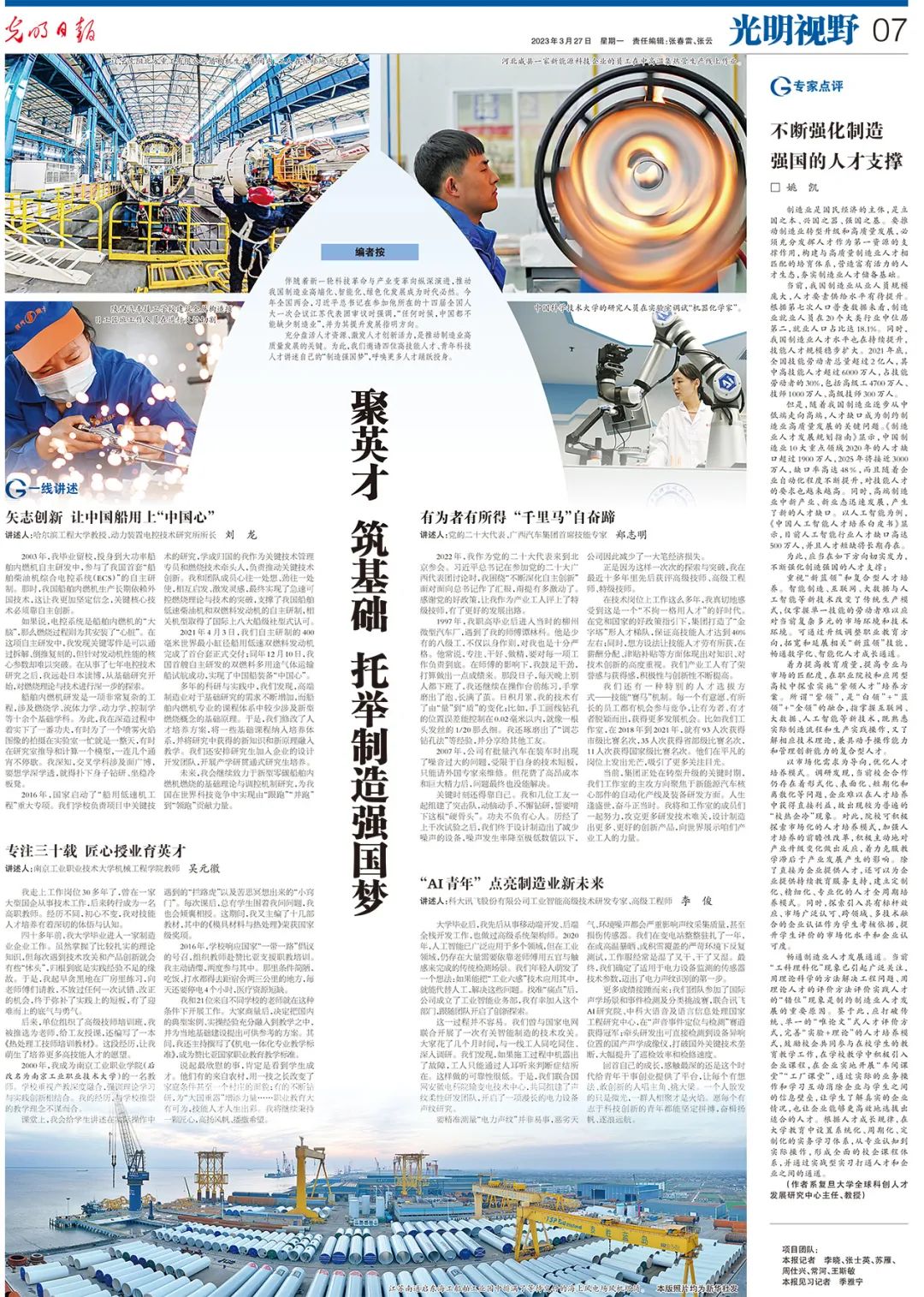 文字来源于《光明日报》2023年3月27日光明视野07版《聚英才,筑基础,托举制造强国梦》一文李俊校友自述。