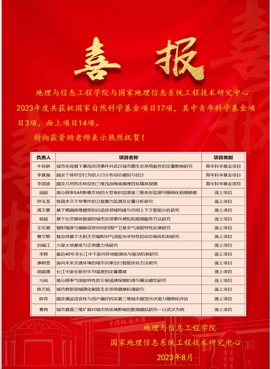 磁力狗 与国家地理信息系统工程技术研究中心2023年度共获批17项国家自然科学基金项目