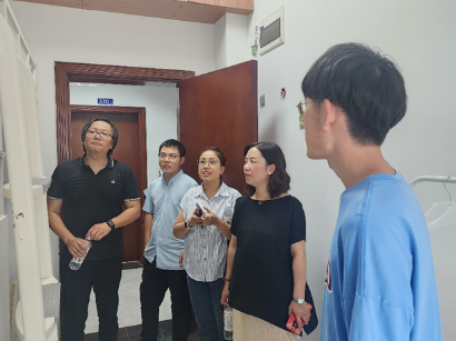(武汉)副校长刘杰,地信学院党委书记孙莉,副院长关庆锋,副院长王伦澈,研究生导师罗增良,辅导员穆巴热克、张恪走访了位于未来城校区的地信学院研究生新生宿舍,了解同学们对新环境的适应情况,送去温暖问候。