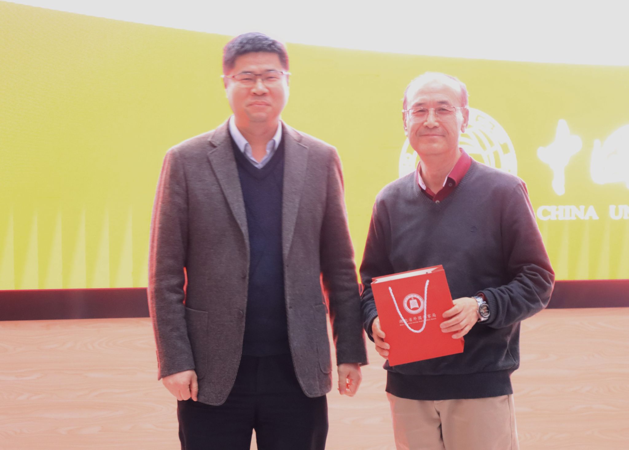会议伊始,学院院长王绍强向学院2022年引进外籍教师、国家杰出青年科学基金获得者HUANG HEQING传达湖北省外国专家局的亲切慰问。