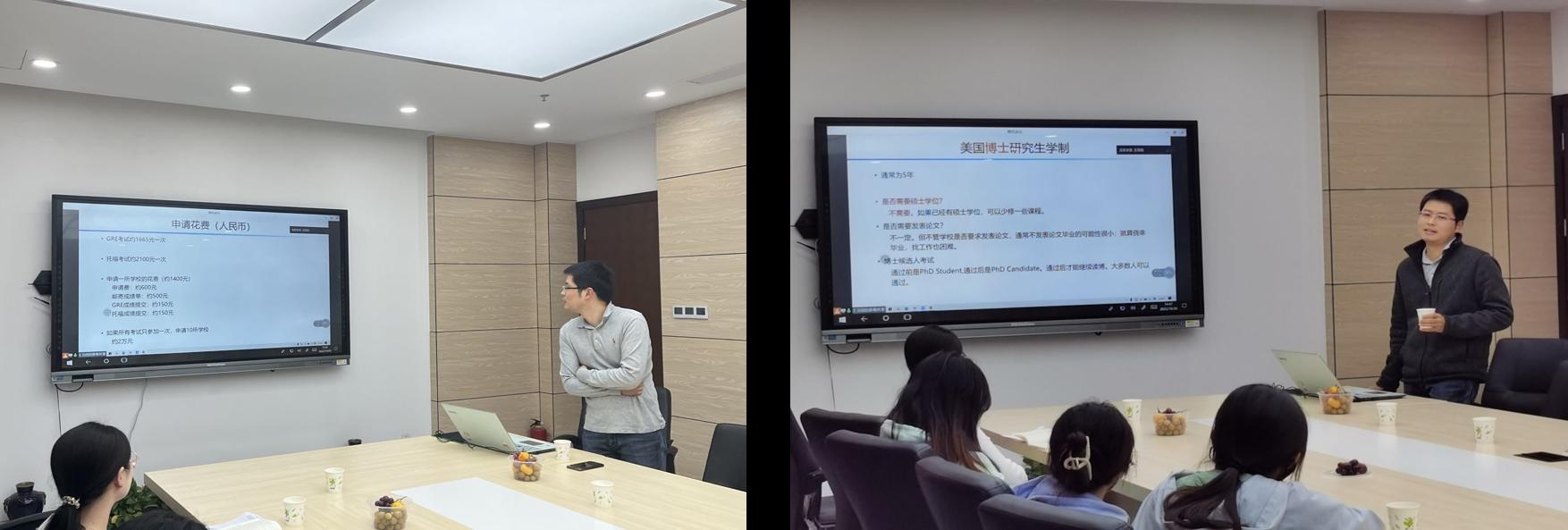 王田田向大家介绍主讲嘉宾王轶教授。古今呈异客,闲雅品人生。王轶以留学初心开启话题,从硕士、博士研究生学制、留学申请所需材料、申请策略、所需花费以及如何申请奖学金等多个方面进行了详细的讲解。他用自己的亲身经历言传身教,激励我们要不断尝试,突破自我,不要墨守成规。