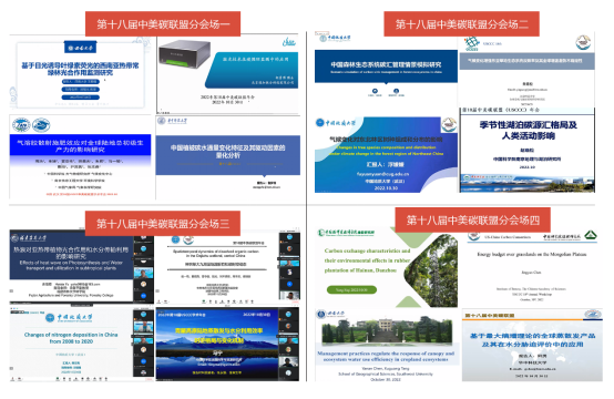 为增进国内外老师和同学的学术交流,本届中美碳联盟(USCCC)年会设置了4个分会场,围绕碳通量和能量的观测与研究、气候变化以及碳氮水循环过程与调控机制等主题开展。各个会场报告精彩,讨论热烈,深入探讨了全球碳、氮、水循环领域研究进展,为该领域的发展贡献智慧力量。