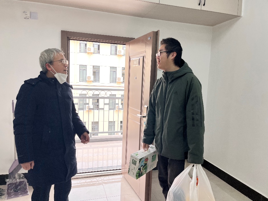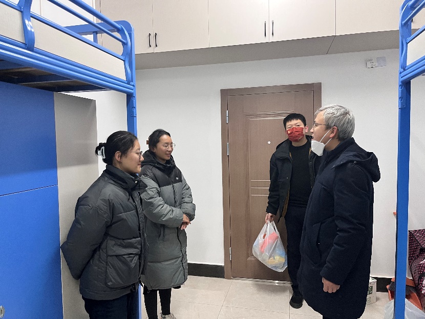 许书记先后来到54、57栋磁力狗 留校男、女生寝室,与同学们亲切交谈,咨询询问同学们的学习生活情况,叮嘱同学们要注意防寒保暖,充分利用寒假时间,劳逸结合,做好个人规划,春节期间,要保持与辅导员老师沟通交流,及时与家人报平安,并预祝同学们度过一个安全、温暖、祥和的新春佳节。