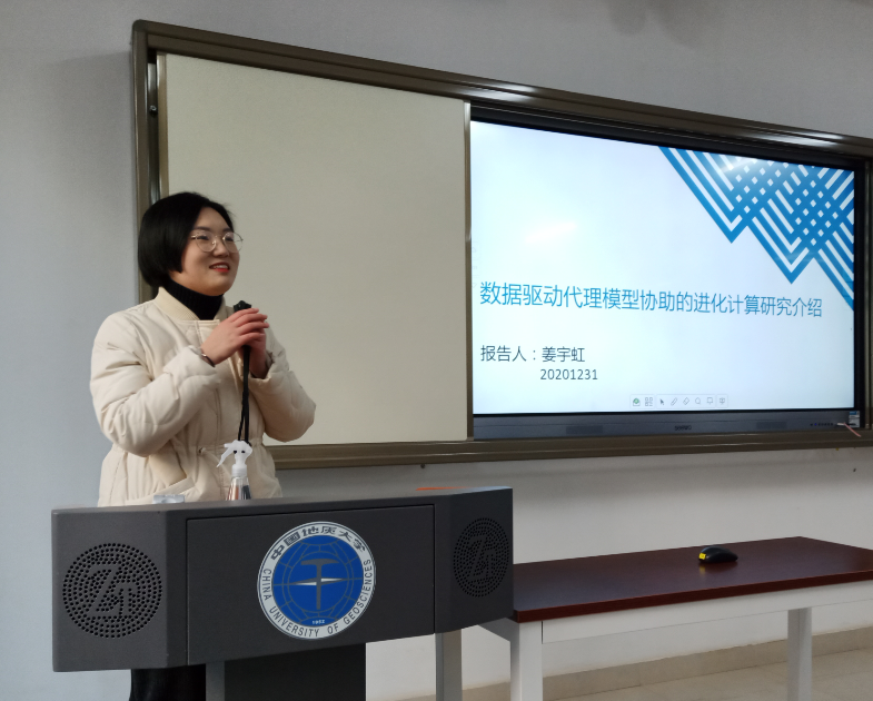 上午9:30,在主持人致开场词后,首先由姜宇虹博士为大家带来精彩的报告,报告的题目为“数据驱动代理模型协助的进化计算研究介绍”。