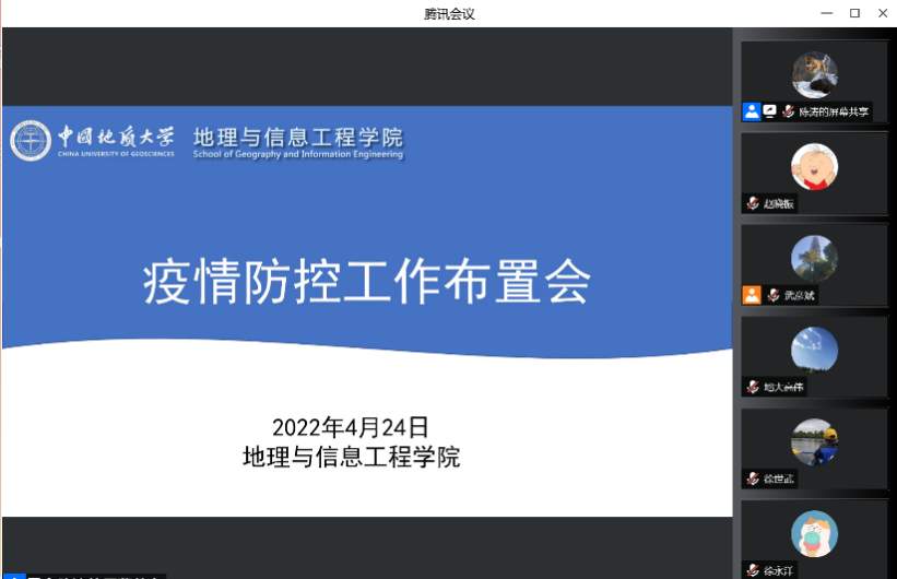 学院党委书记许德华传达学校疫情防控工作领导小组文件和会议精神。关庆锋、武彦斌、宋小青、曾云等领导和老师分别就疫情防控、线上教学、本研毕业事宜、专题班会、配合流调、核酸检测、外出审批等进行了通报交流和工作部署。