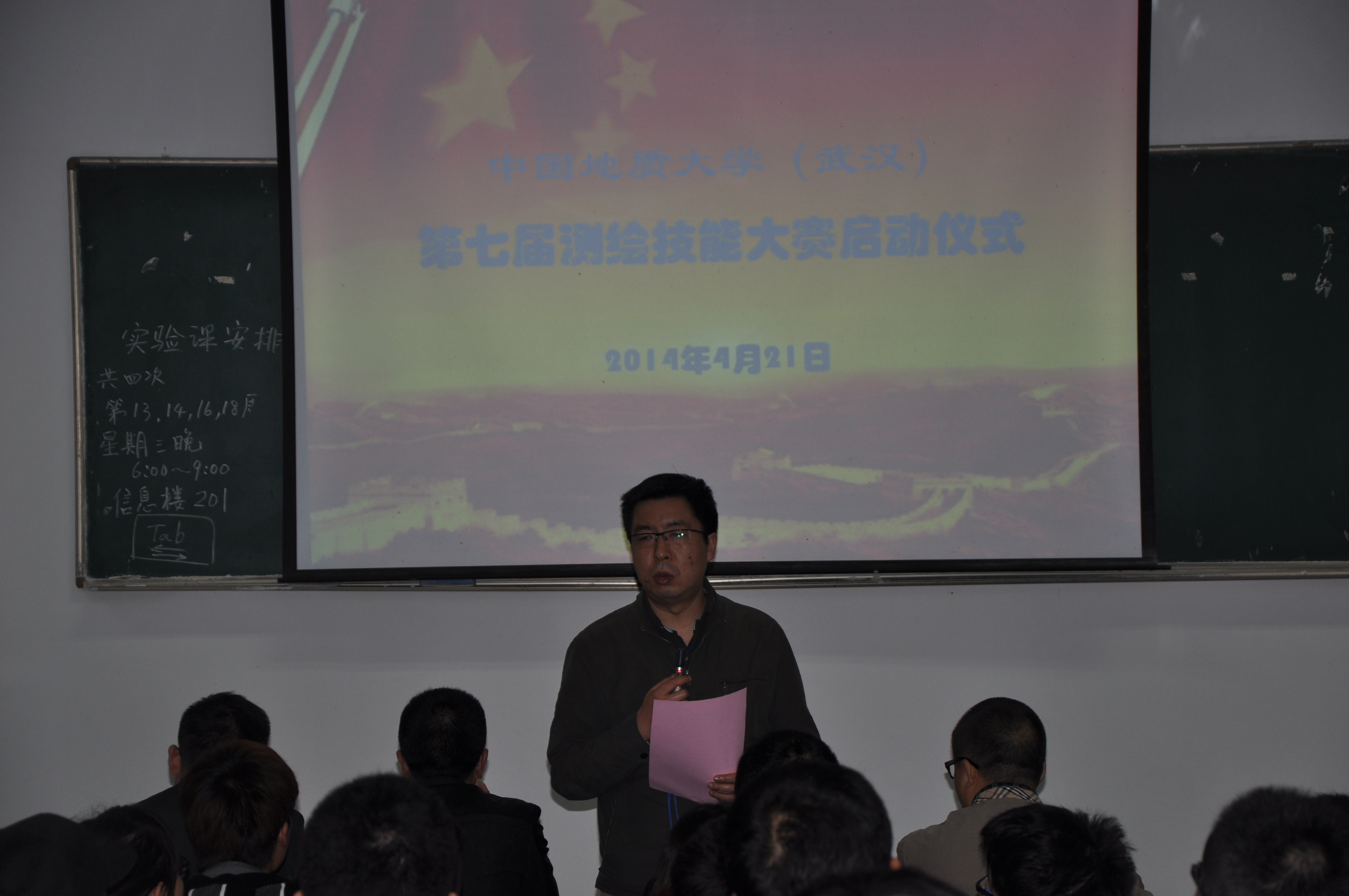 合作,同时也强调了动手能力的重要性,告诫同学们“纸上得来终觉浅,绝知此事要躬行”。接下来,测绘工程系副主任吴北平教授向大家介绍了本次大赛的筹备情况。最后,校团委副书记姜明敏老师讲话,表示此次大赛不仅是学院的科技活动,也是学校团委和学院团委联合主办的大学生科技创新活动。也希望通过此次大赛给同学们营造了一个良好的科研氛围,使同学们的能力有一个好的提升。