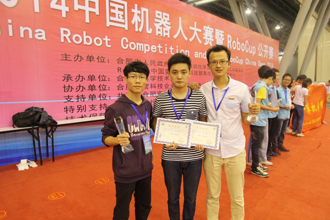 “CUG机器人团队”在信息工程学院罗忠文、杨林权老师的指导下,经本科生习文强、李志航、李佳骏、胡一鸣等队员奋勇拼搏,再次荣获佳绩,夺取了仿真机器人足球5V5项目亚军和仿真机器人足球11V11季军两座奖杯,两个特等奖。