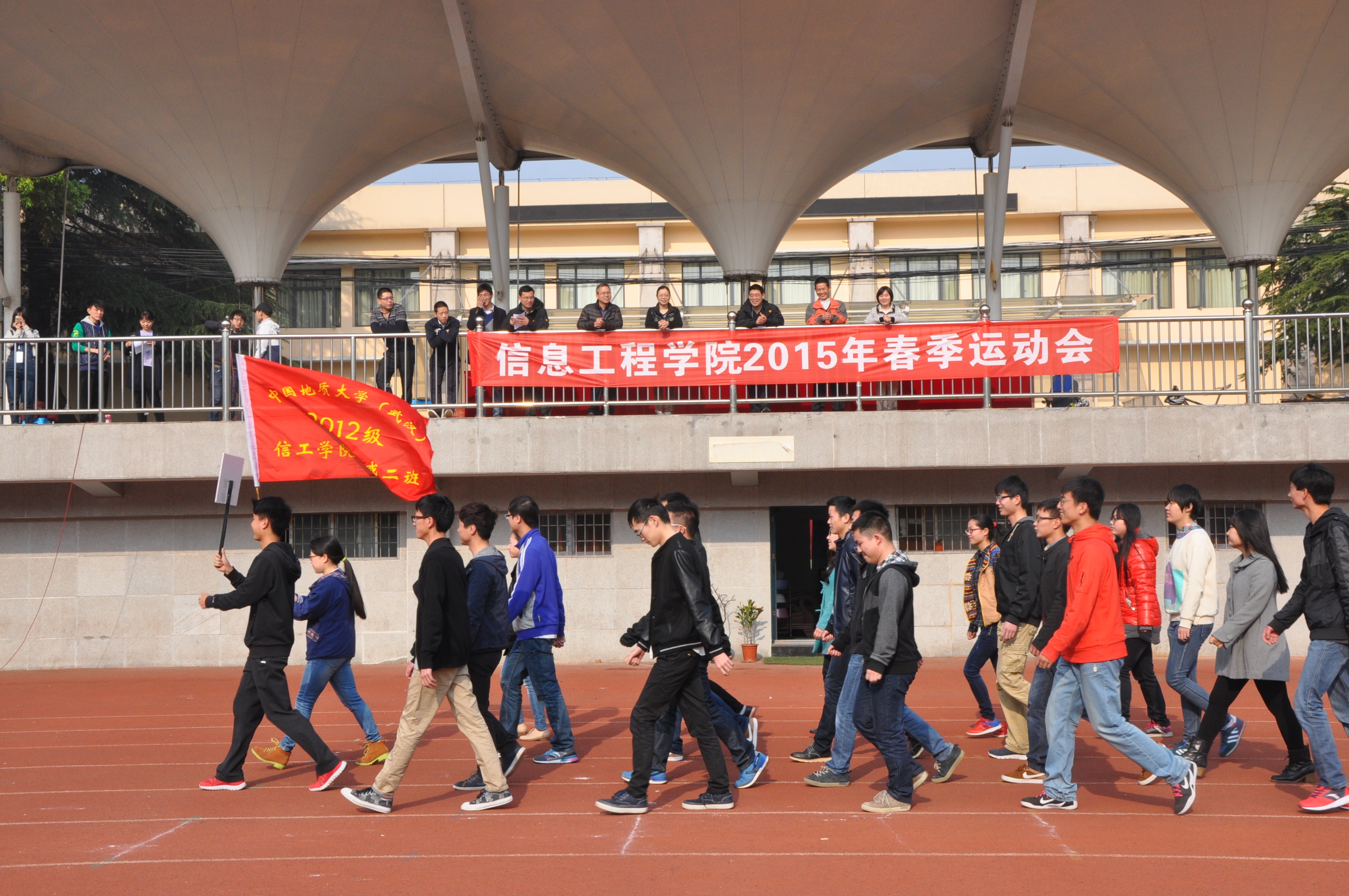 (通讯员 潘慧 王渊)为增强大学生体能素质,促进师生课外交流,信工学院于4月11日在西区运动场举行了2015年春季运动会。学院院党委书记黄菊、副院长刘修国、副书记许德华、工会主席吴北平、测绘系主任陈刚老师等和全体学生参加开幕式,学院20余名老师与同学们一起参加了各项体育竞赛。
