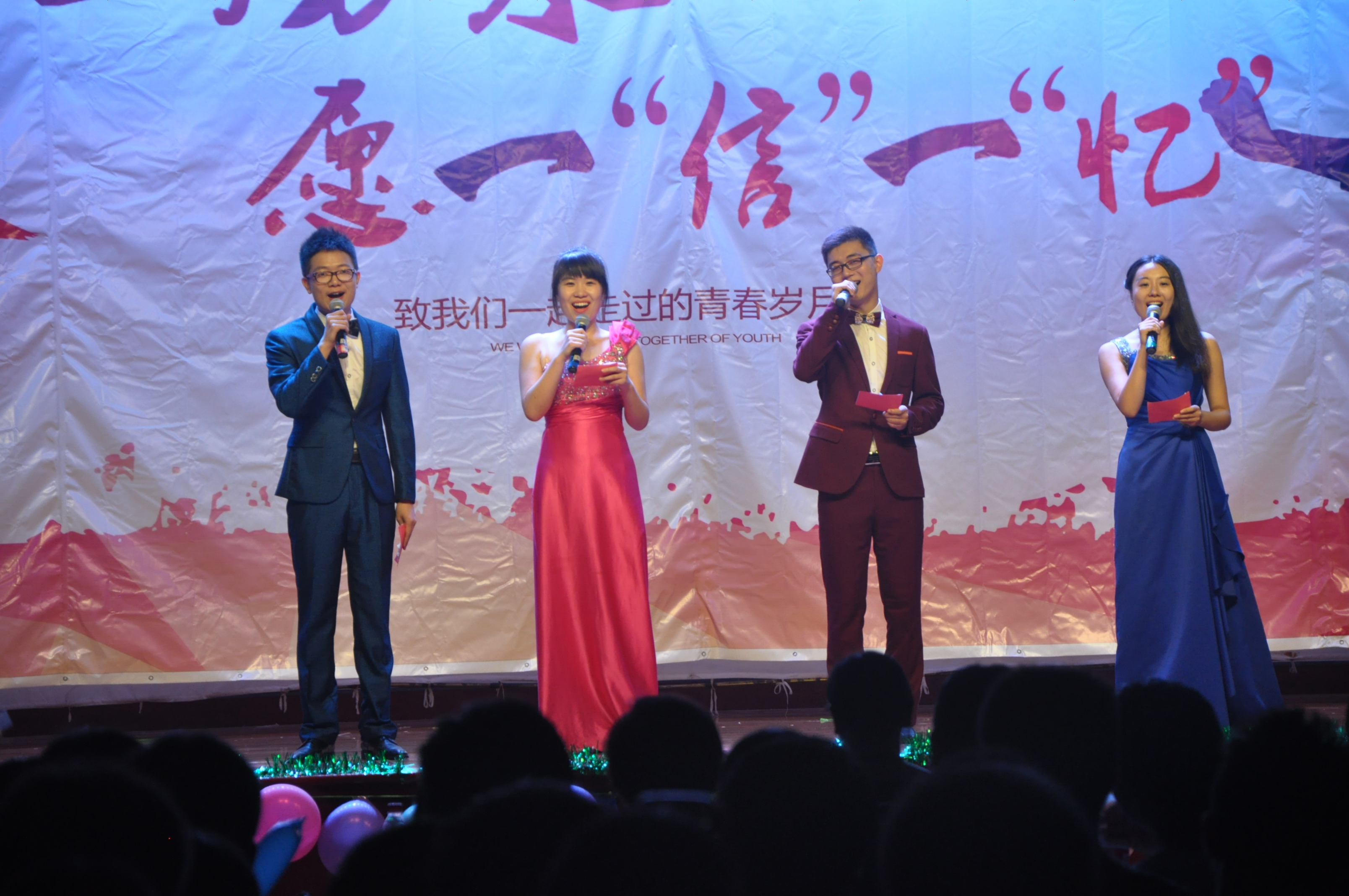 晚会以播放毕业感言和寄语的形式拉开序幕,引起了全体毕业生的强烈共鸣。此次晚会独具匠心,在节目之间穿插了情景剧向在场师生再现了大一到大四各个年级同学们典型的生活和学习状态,早操起晚后的匆忙、上课迟到后的担心、宿舍打游戏的惬意、复习考研时的紧张等等,让毕业生们仿佛又回到了刚刚入学的时候…