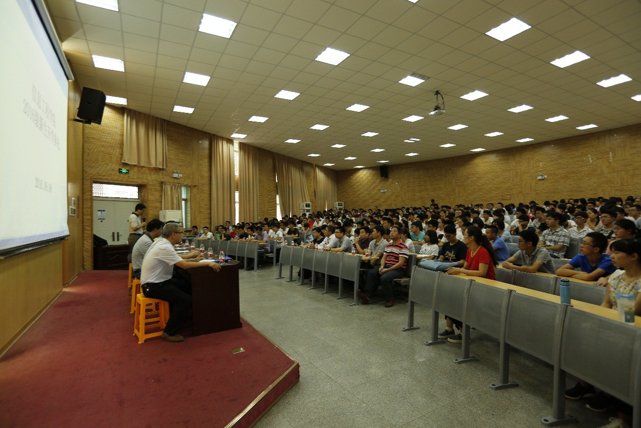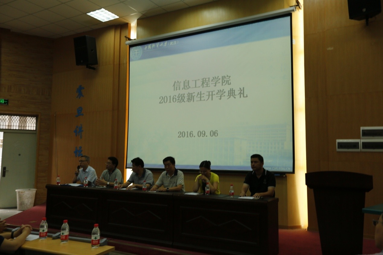 9月6日上午8点30分,信息工程学院在教三楼109教室举行了2016级新生开学典礼暨入学教育活动。信息工程学院院长谢忠、党委书记黄菊、副院长罗忠文、胡友健、刘修国,各系主任、学院办公室与学工组全体老师以及2016级新生参加了此次活动。