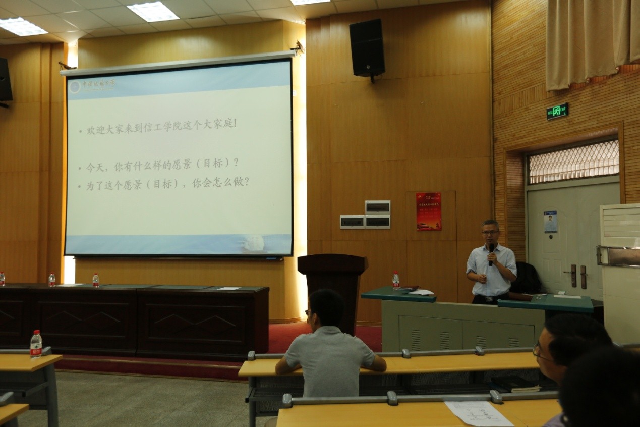 9月7日上午8点30分,徐康老师就大学学习与学务咨询相关事宜向新生做了详细的介绍与讲解,主要包括学分计算、课程设置、学业考核与管理以及教务系统的使用四方面,帮助新生快速了解与自身学习发展相关的信息,从新学期开始就明确今后的学习目标。随后是许德华老师为新生解读大学生学业规划,许老师结合诸多实例与目前的社会形势向新生传达了大学时光的宝贵性,人生选择的关键性以及班级凝聚力的重要性,并期望每位学子都能无愧于自己的大学生活。接着,2016级新生辅导员武彦斌老师就同学们近期询问的相关事宜做了具体的解释,并结合亲身经历鼓励在场新生创新创业与科技创新,博得阵阵掌声。