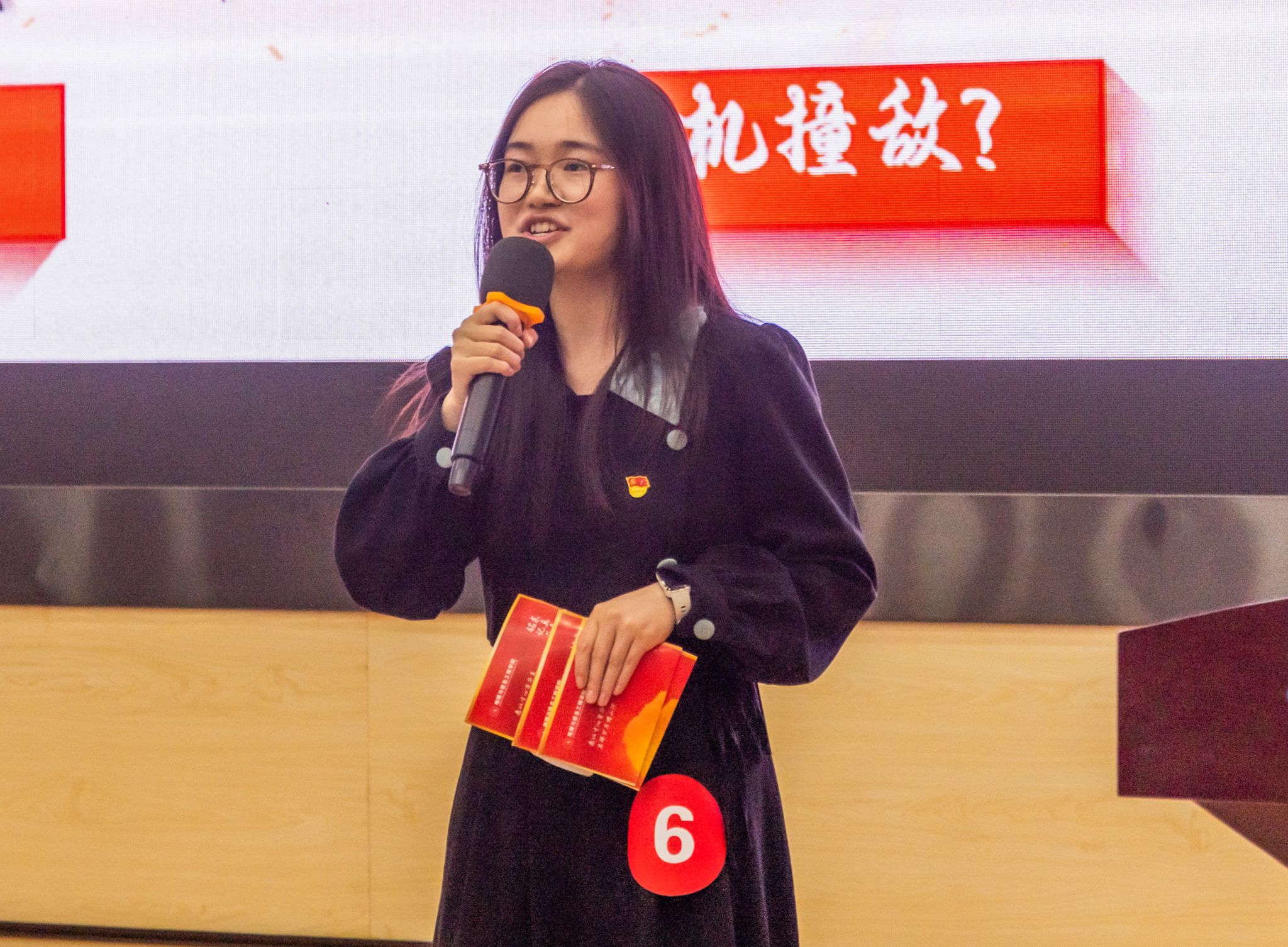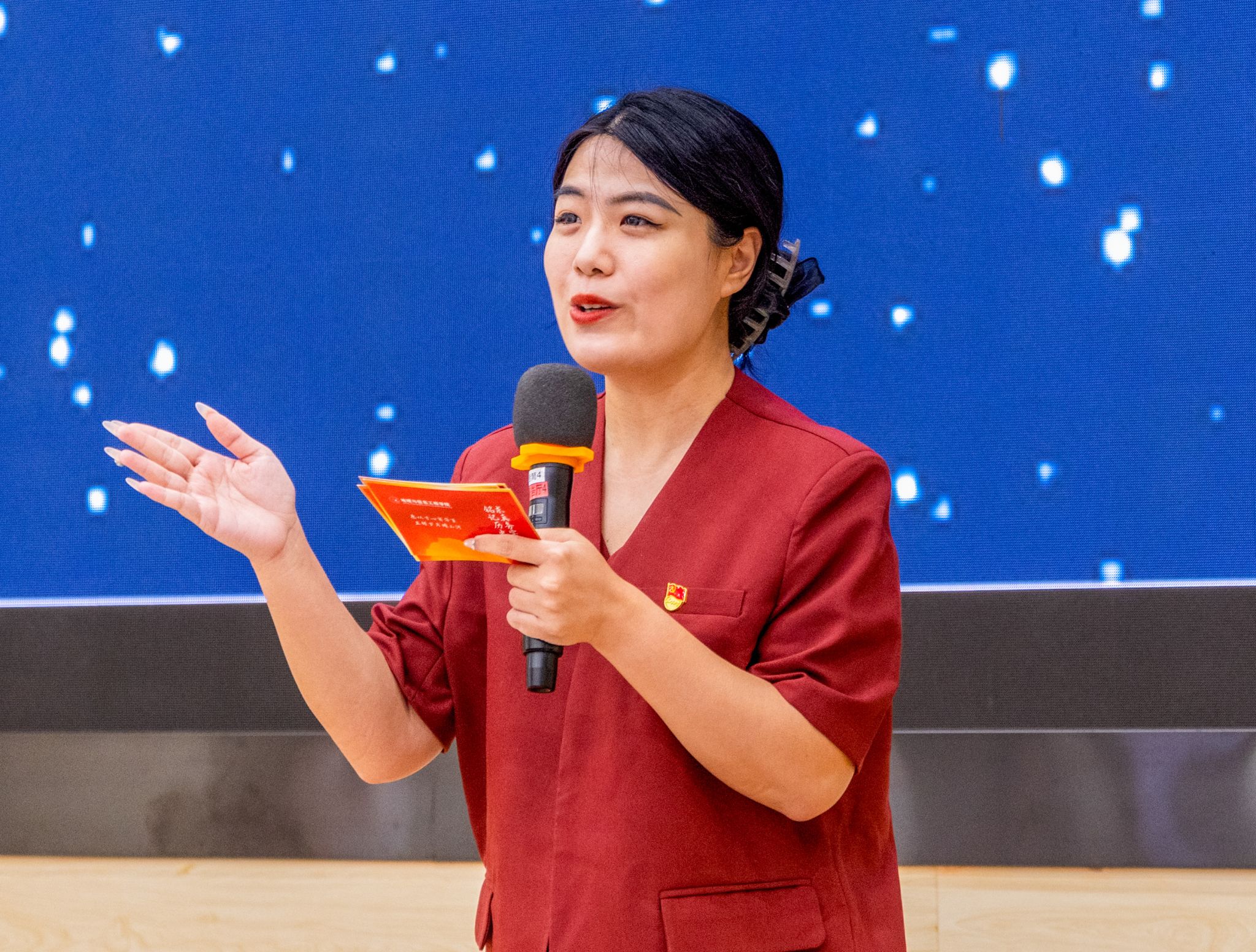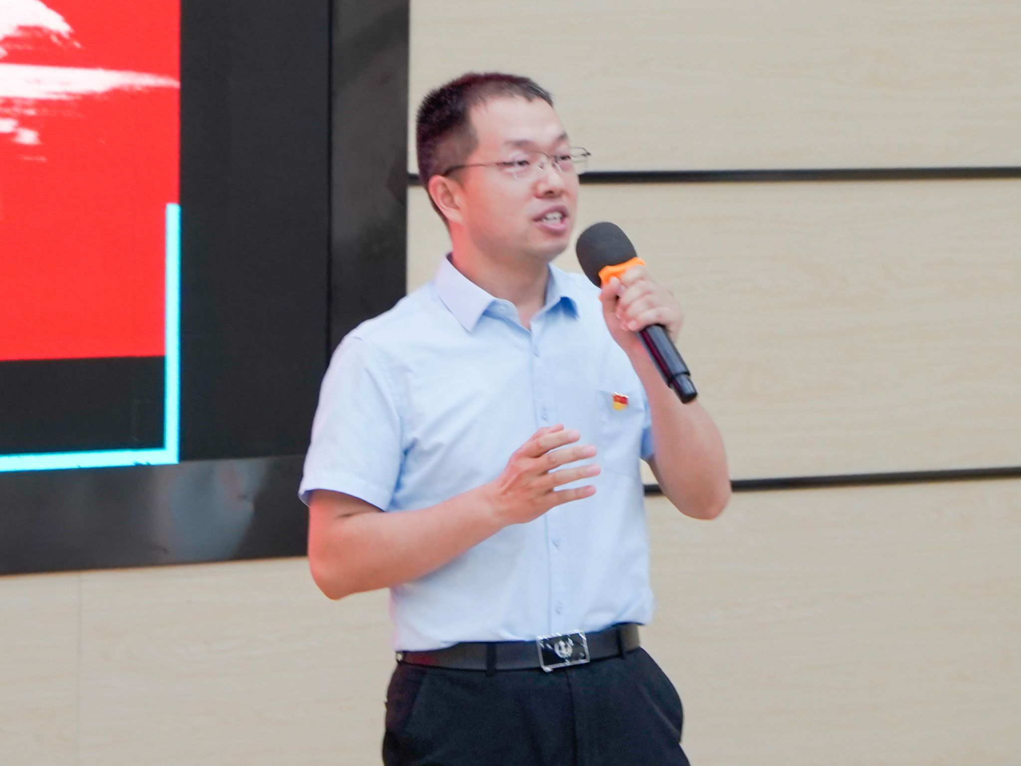 “党史我来讲”主题宣讲环节,十位师生党员结合专业特色和红色党史,共同打造了一场生动的党史学习教育大课。王广兴老师讲述红旗渠精神、张纫兰老师解码青年学“四史”路径、龚君芳老师剖析百年党史智慧,张恪老师致敬英雄“牛保才”,四位老师精彩的讲述让现场听众真切感受到历史的温度。杨英重述“遵义会议和长征精神”,谢羽讲述一场跨世纪的科技自立自强接力,陈庆龙诠释“延安精神”,黄嘉华讲述 “马灯的故事”,韦意还原烈士绝笔家书,巫莉娟再现“武汉空战”,6位学生党员讲述的红色故事也令现场全体党员深受触动。