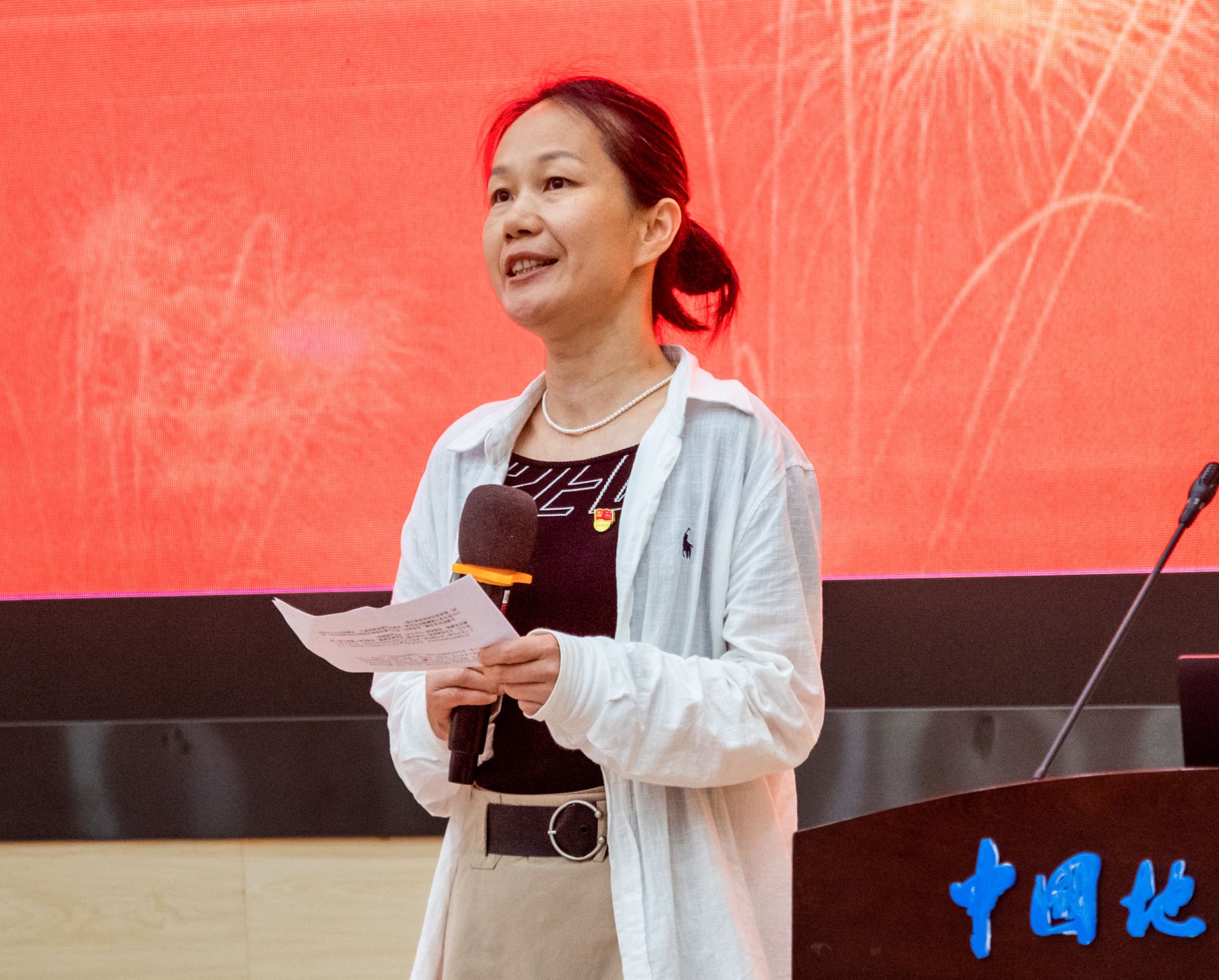 蒋怀柳作总结讲话。她代表党委组织部对学院“党史我来讲”宣讲活动的顺利开展表示祝贺,同时也10位选手的精彩表现由衷的点赞。她指出,本次活动师生同台,共讲党史,实现了教师主导与学生主讲、还原历史和映照现实、知识传授和价值引导三个统一,既有理论高度又接实践地气,是一次“沉浸式”的四史教育课堂。她强调,党史学习要回答政治之问、价值之问和时代之问,寄语地信青年从做党史解读者到当时代答卷人,做政治坚定的“明白人”、知行合一的“践行者”、新风正气的“传播者”,让共产党人的精神火炬在地信学子的奋斗坐标中永续传承!