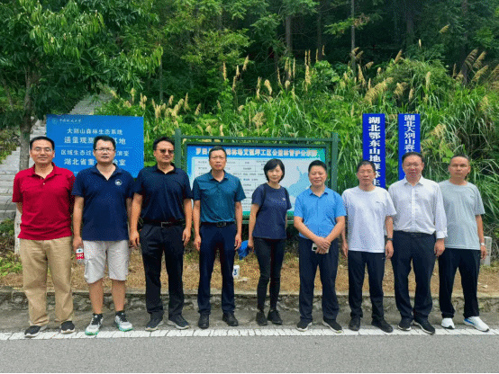 2025年8月22日,湖北省科技厅基础处一级调研员陈军云及考察组专家一行四人莅临湖北大别山森林生态系统野外科学观测研究站(以下简称“大别山站”)实地考察指导工作,湖北大别山国家级自然保护区罗田管理局薄刀峰分局局长何建国、学校科发院副院长郭锐、学院院长王伦澈、学院办公室主任李洋和黄春波、林伟华老师等参加汇报交流。