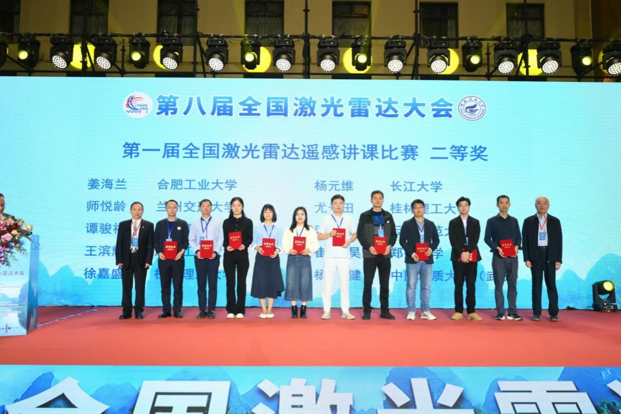 肖文老师在大会上被聘为国际数字地球学会激光雷达专业委员会委员,杨健老师获得第一届全国激光雷达遥感讲课比赛二等奖,2个学生团队荣获数据处理竞赛“一等奖”。