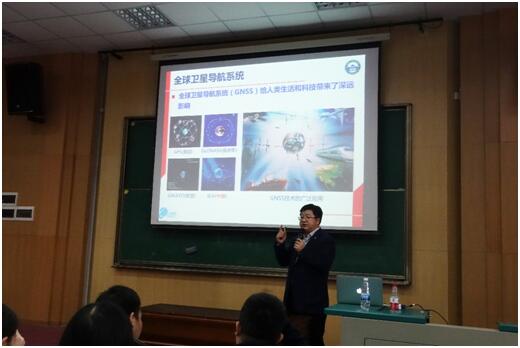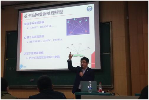 紧接着,姜卫平教授说起了基准站网能大大地提高定位的精度,无论是哪个级别的,在某些工程中精度甚至能达到毫米级别。同学们在惊叹基准站网的强大作用的同时,也认真听了姜卫平教授举的许多基准站网在现实中的应用例子。