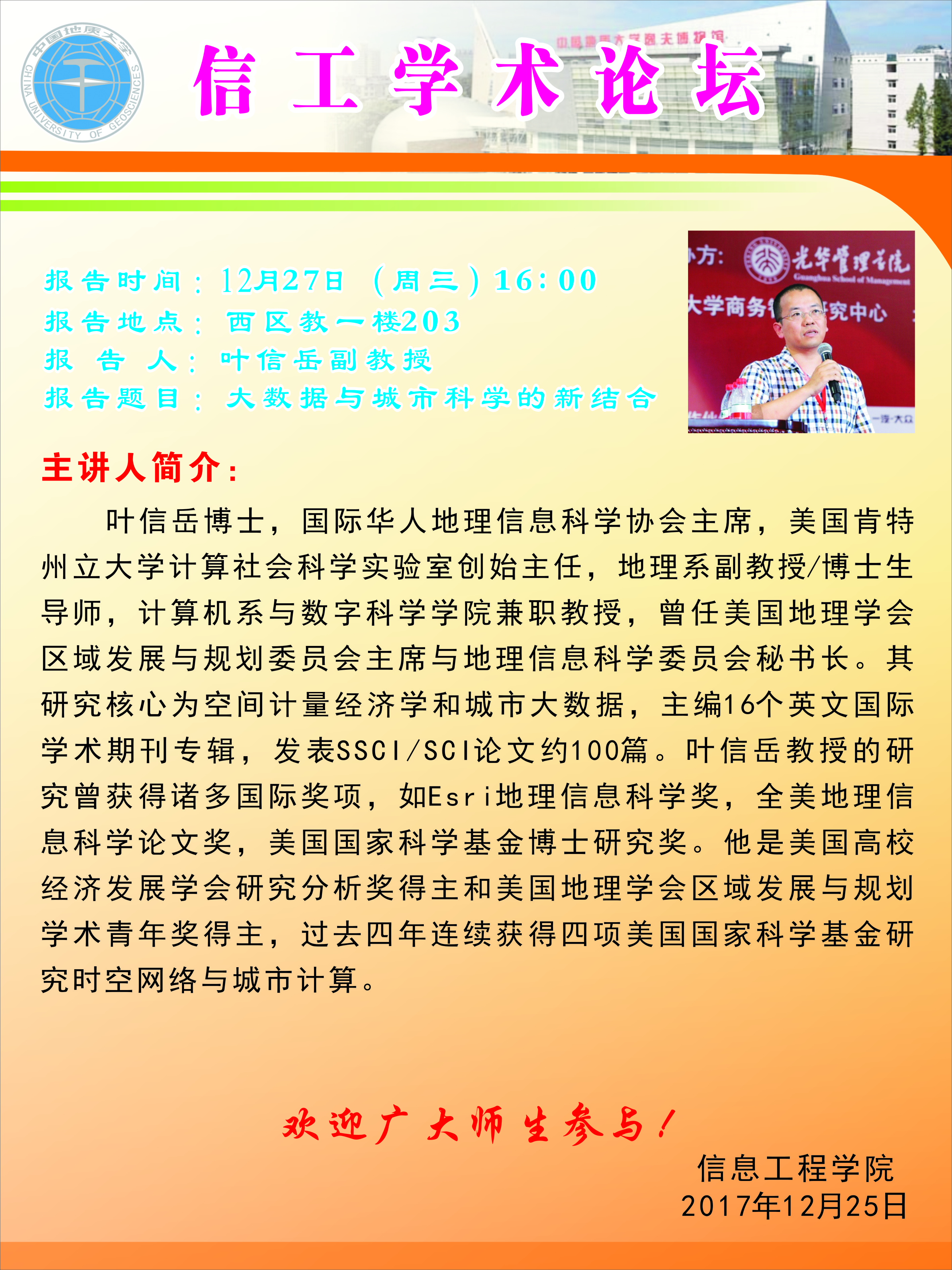 信工学术论坛第106期——叶信岳