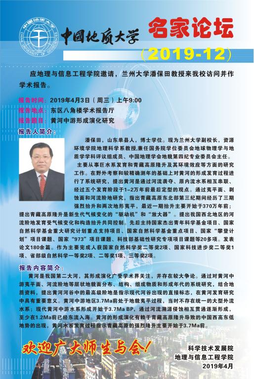名家论坛(2019-12):黄河中游形成演化研究