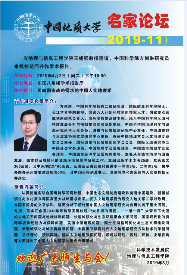 名家论坛(2019-11): 面向国家战略需求的中国人文地理学