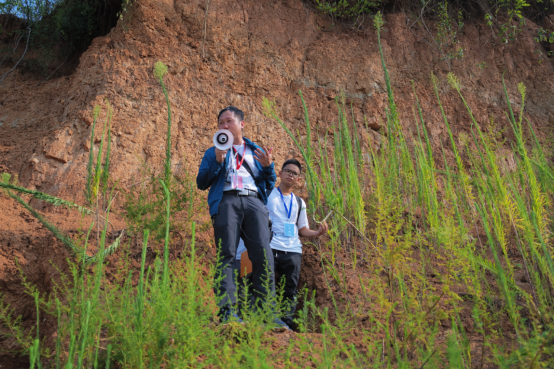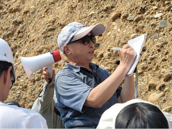 (武汉)季军良副教授向实习师生详细讲解了黄土的基本沉积特征、成因、物源、搬运动力、堆积地形、测年方法、类型划分;将郧阳黄土与黄土高原黄土进行对比,讲授黄土的古气候指示意义,带领学生走进第四纪沉积物的神奇世界。学生观察郧阳黄土的颜色、结构、构造、成分、钙质结核等基本特征,识别黄土的柱状节理,思考黄土中古土壤的形成过程及黄土与古土壤交替出现的第四纪冰期与间冰期旋回。