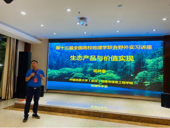 (武汉)侯林春副教授应邀为“荆楚地理大讲堂”第二期做了题为“生态产品与价值实现”的报告。侯老师为实习师生详细介绍了生态产品的概念与特征、生态产品价值核算方式以及生态产品价值实现机制等内容。同学们围绕生态补偿标准合理性、生态补偿政策协调性、生态产品价值核算标准等问题与侯老师展开深入探讨。