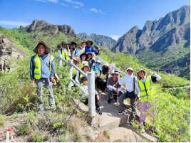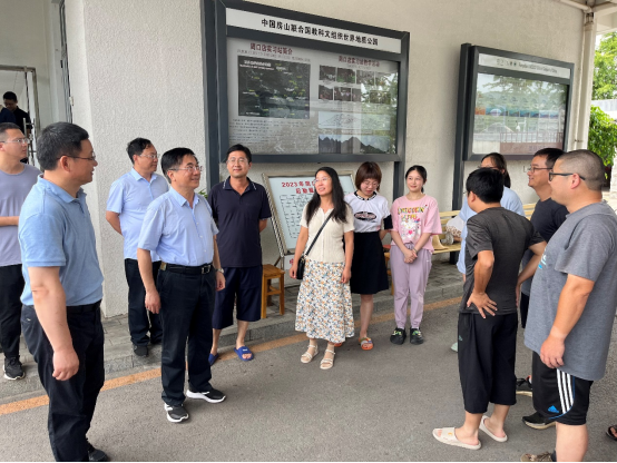 7月11日上午,校长王焰新、副校长刘杰等一行到实习站看望慰问实习师生。校领导们先到官地-羊屎沟路线看望正在野外实习的师生,与师生在野外深入交流,并查看和指导学生的野簿记录内容。野外路线考察后王焰新校长一行参观了陈列室、学生宿舍、食堂等,充分肯定了师生们在周口店认真工作和学习的精神,并勉励学生在“摇篮之旅”学到真本事、锤炼真本领。(供稿人:赵国松,温彦平,季军良,杨欢,赵晓振)