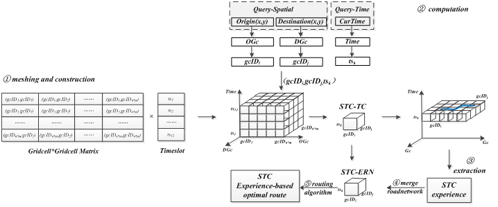 Fig.1Methodological framework of the experience-based path-finding approach based on the space-time trajectory cube set
