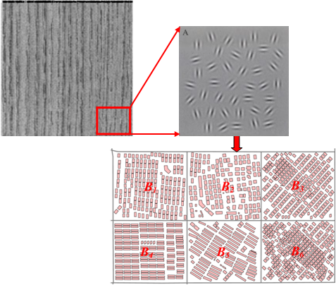 (可看出建筑物目标的形状、延展方向、面积等属性在空间上的变化和重复形成了规律性纹理结构,类似于图像灰度纹理模式)