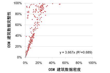 图 1 OSM建筑数据密度与完整性的线性关系