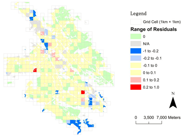 图 3 残差空间分布(实验区域:San Jose City)