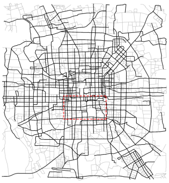 路网综合是地图学领域的经典问题,其目的在于,减少地图目标数量的同时,尽量保持综合前后路网的整体模式特征。该技术可支持地图数据金字塔模型构建、矢量数据渐进式传输以及网络地图多尺度表达等应用。路网综合算法的关键是提取道路结构的模式特征,并依此设计弧段选取策略。然而,传统方法仅关注路网的几何和拓扑属性,通过引入图论、路划(stroke)等模型,选取拓扑显著的中心弧段和几何连续性较好的邻接弧段。人们由导航地图选择路径的过程中,除了关注弧度的拓扑和几何属性,往往更强调弧段之间的功能联系。该特征反映到地图上即为邻接弧段共同形成一条出行路径的概率。交通联系较大时,相应道路应被视为一个整体来考虑(即在地图上同时被删除或保留),以保证高频通行路线的完整性。