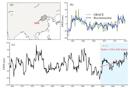 陆地水储量变化受到气候变化和人为活动的共同影响。尽管GRACE重力卫星可以提供全球陆地水储量变化的估计,但是分离陆地水储量中的自然和人为影响仍然受到限制。本研究提出了一种基于长期降水重构的陆地水储量变化定量分离两者贡献的方法。