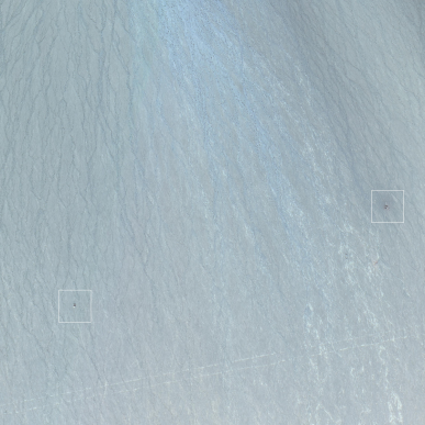 在无人区中,能忽略沙漠和植被等背景干扰,发现场景中的建筑物小目标。