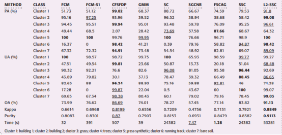 图1. 印地安纳影像各方法聚类结果 |