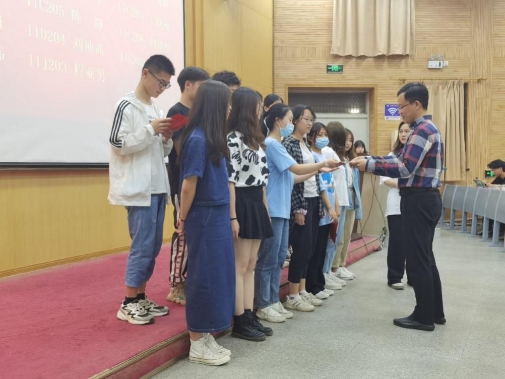 武彦斌宣读《关于表彰2021年度五四先进集体及优秀个人的决定》,并依次为获得学院五四红旗团支部、特色团支部、志愿服务工作优秀班集体、好支书、好班长、优秀共青团干部、优秀共青团员、优秀志愿者、优秀通讯员颁发奖状。