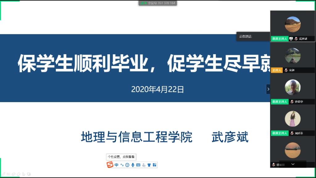 院党委副书记武彦斌汇报学院就业工作进展,并代表学院班子就学院招生宣传和就业工作作布置。武彦斌以“保学生顺利毕业,促学生尽早就业”为主题,介绍学院2020毕业生源情况和主要数据,从“聚合力、准摸排、精指导、拓渠道”四个方面汇报了学院毕业就业工作的主要举措,并就后期工作重点,如加强滞后毕业学生和就业困难学生就业帮扶,加强“考公”学生就业指导,促升学等方面作部署作动员。同时,他就学院2020年招生宣传工作从基本原则、组织机构、任务分工等方面进行工作布置。