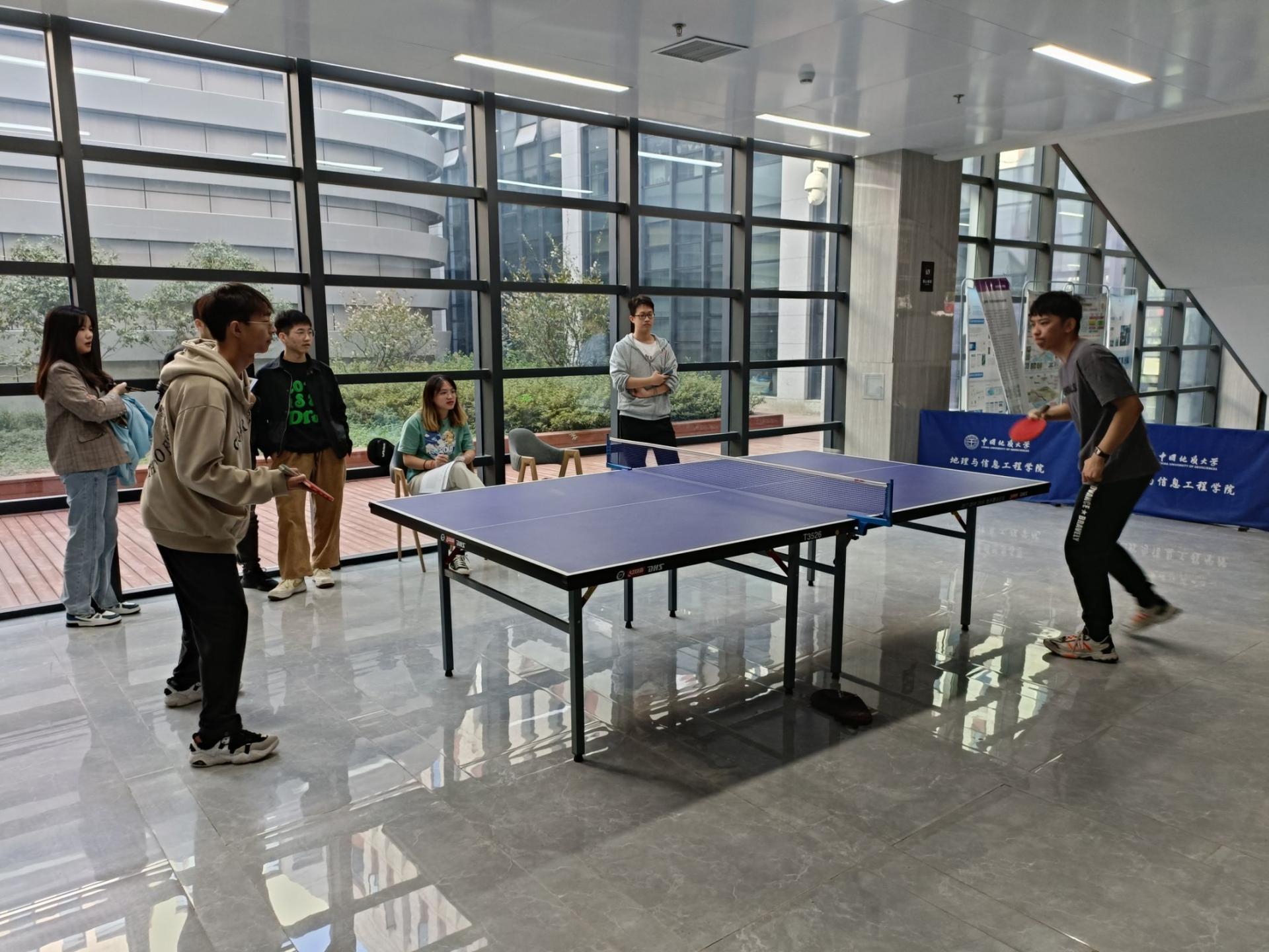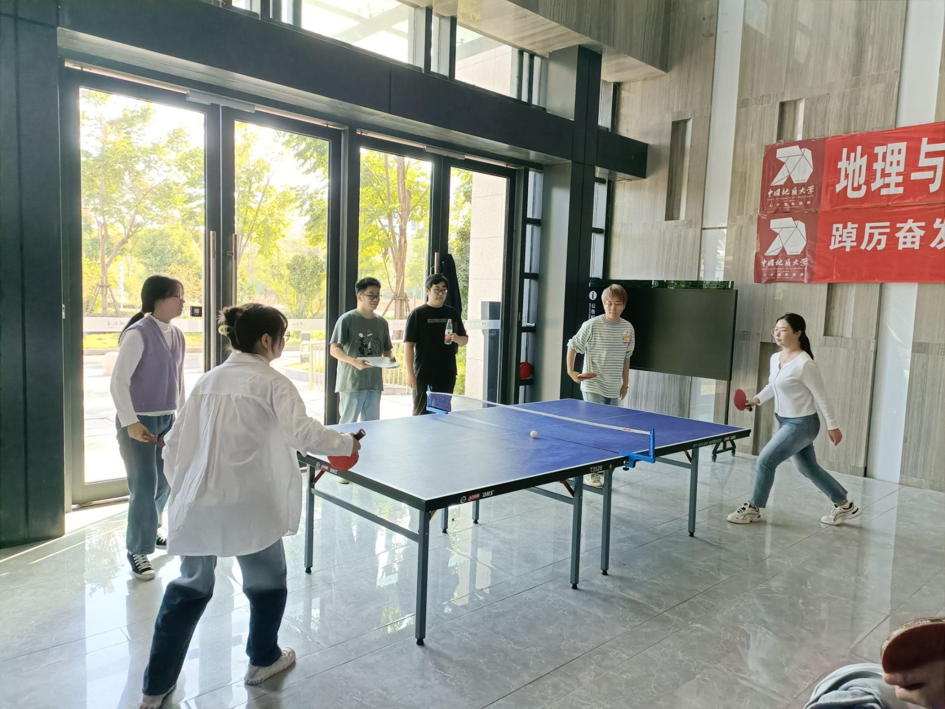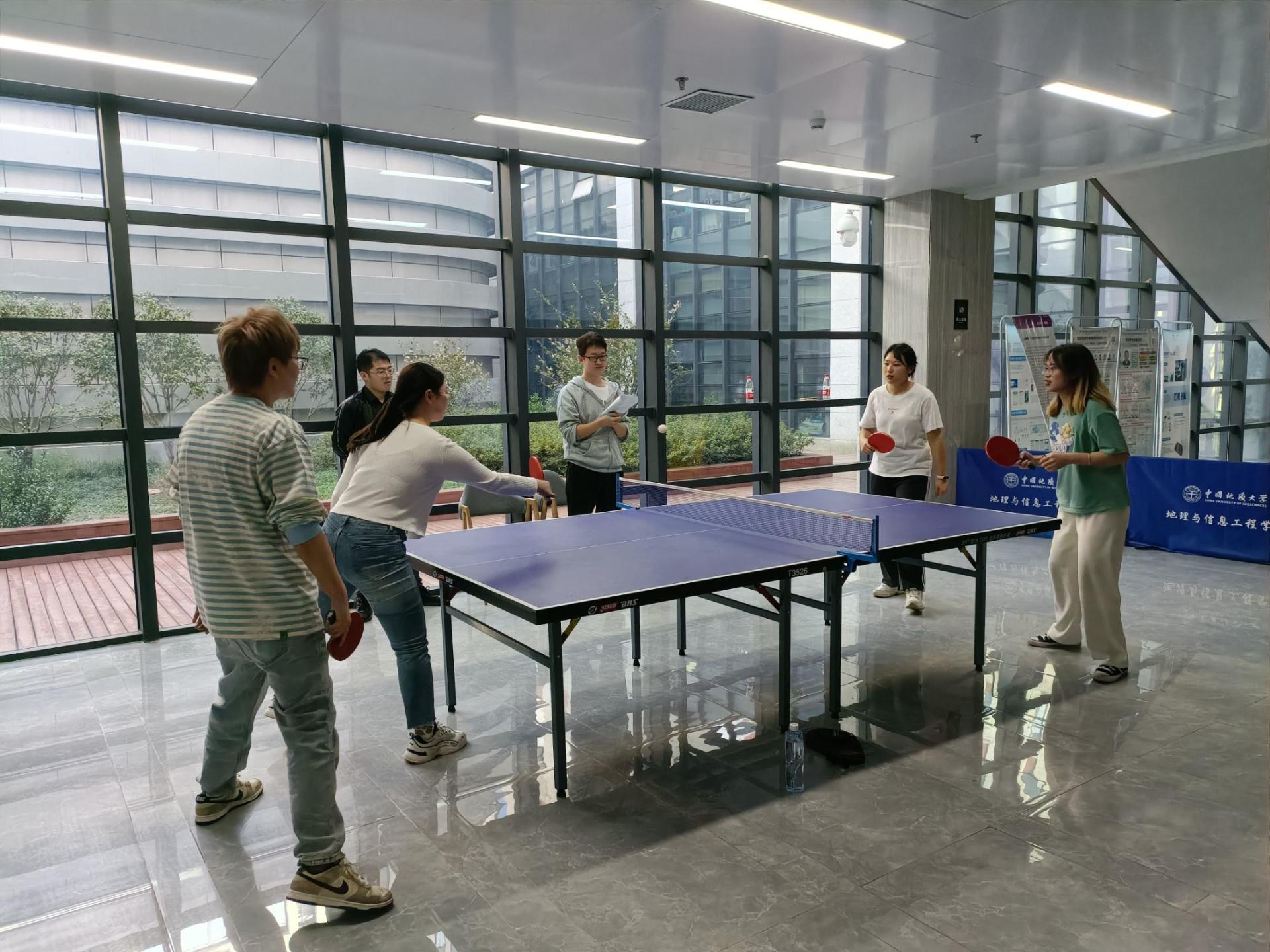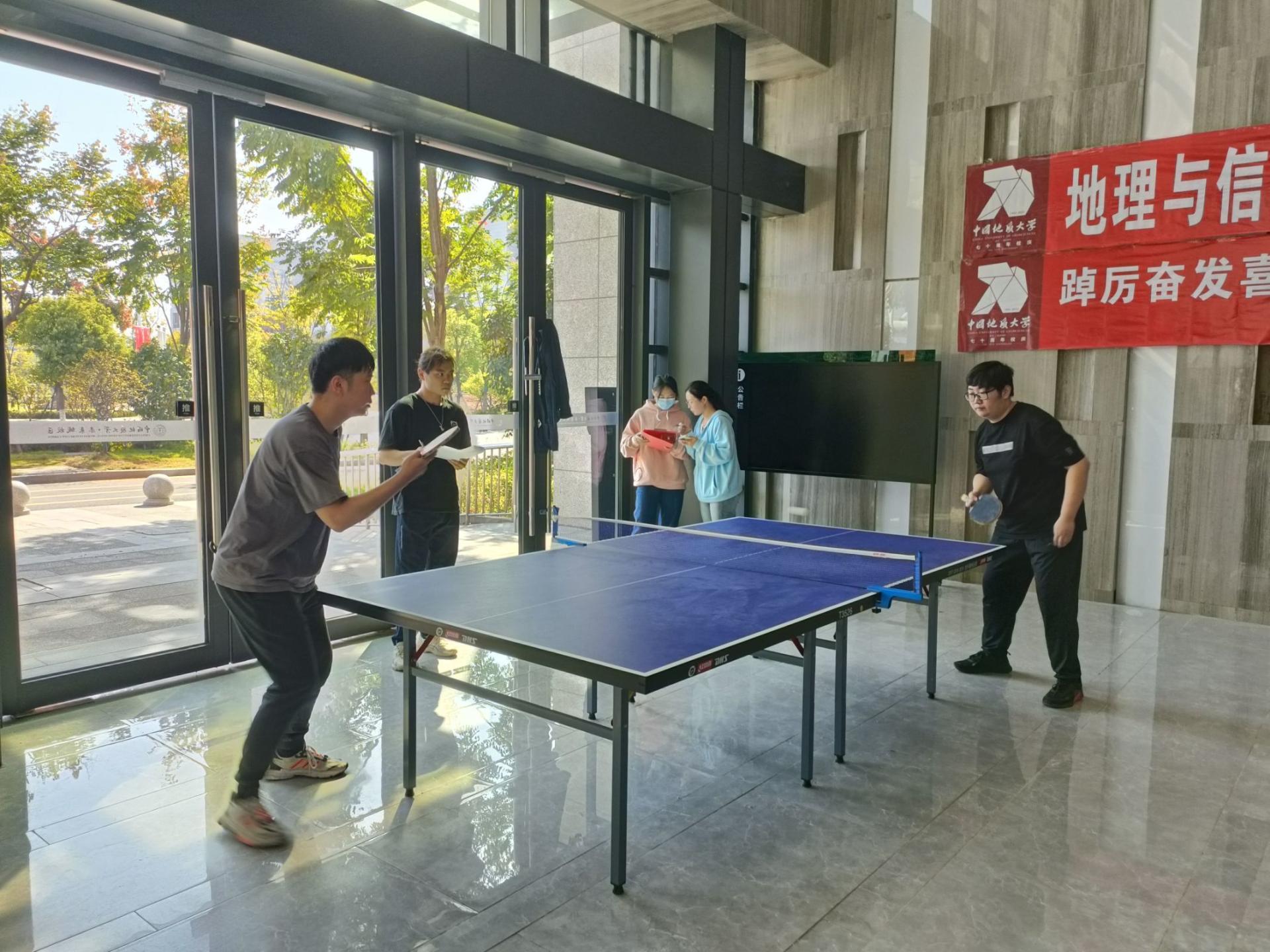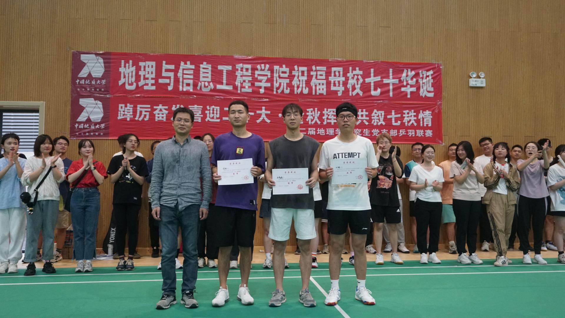 乒乓球项赛事共设立男单、女单、男双、女双、混双5个项目,参赛队伍达40队,五个项目共对阵40场。经过激烈角逐,空间规划团队党支部王凯、郭倩钰分别斩获男单、女单冠军;空间规划团队党支部王凯、张印和全球变化团队党支部任明煊、程楠分别荣获男双、女双冠军;环境遥感团队党支部黄荷、洪郁宁获得混双冠军;空间规划团队党支部荣获乒乓球项赛事团体总分第一名。刘剑宇和罗增良分别为获奖选手进行颁奖并进行合影留念。