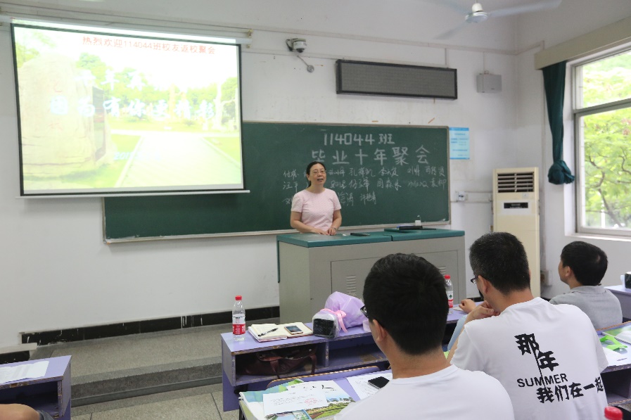 5月26日,信息工程学院2004级地理信息科学专业本科生毕业十周年聚会。下午2点30分,114041, 114042,114044班同学分别在教三楼202、204教室集中。学院党委书记黄菊老师,副书记许德华老师和班主任出席了此次活动。