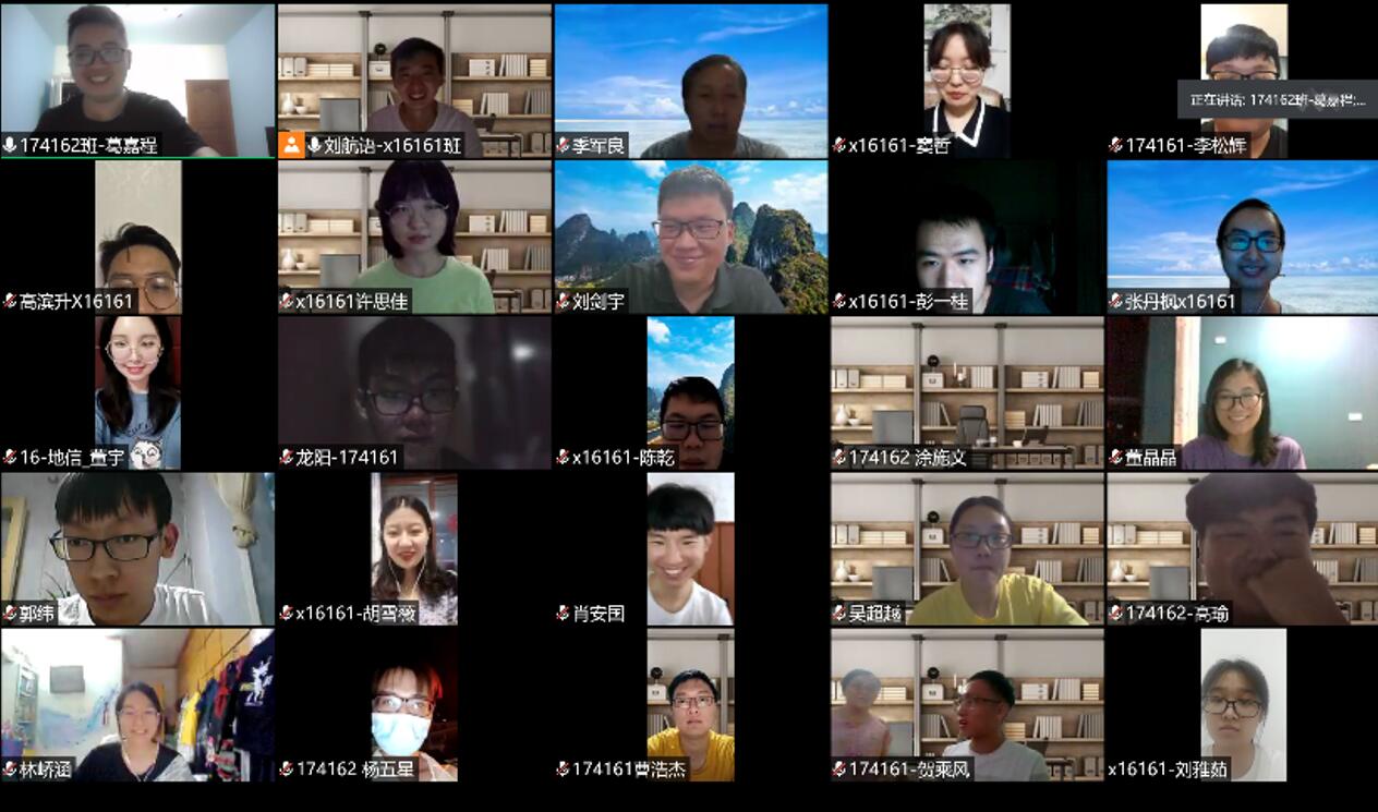 资环和地理专业毕业生座谈会顺利举行。因为疫情管控的原因,本次座谈会采用腾讯会议形式在云端开展。地理系副主任季军良老师,16级班主任侯林春老师、王少军老师、刘剑宇老师和资环、地理专业的50位毕业生代表参与了此次座谈会。本次座谈会由地理科学专业毕委会成员刘航语同学主持。