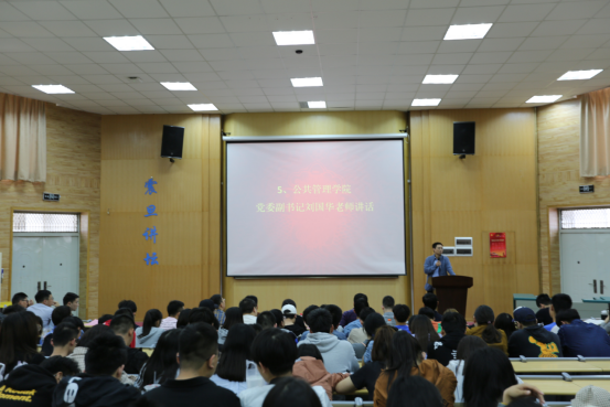 公共管理学院党委副书记刘国华讲话。他指出,我们共同生活在地大这个大家庭中,学术卓越是我们共同的追求,希望同学们在未来能够更严格地要求自己,实现自己的发展。