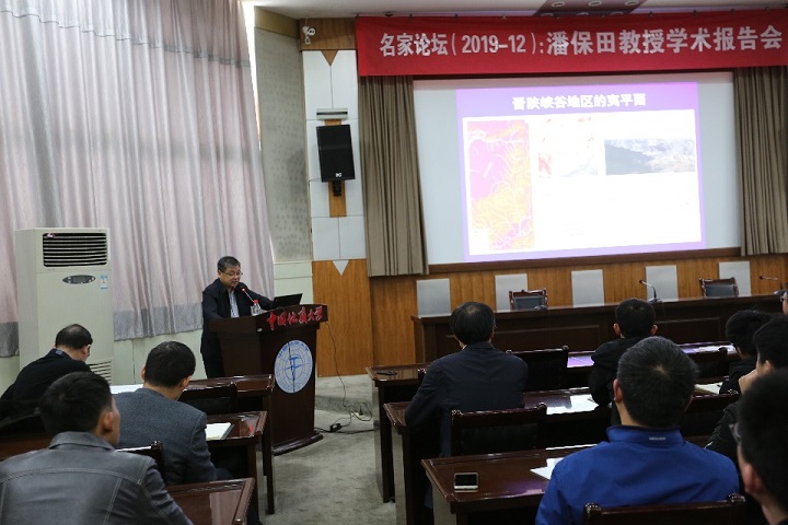 潘保田,兰州大学副校长,资源环境学院地理科学系教授,国务院学位委员会地球物理学与地质学学科评议组成员。他的报告题目为《黄河中游形成演化研究》。潘教授指出,现在学术界对黄河的形成演化存在许多争议,并介绍了部分观点。他阐释了黄河中游夷平面河流阶地等层状地貌分部、结构、组成物质和形成年代的系统研究,并指出,进行黄河中游水系演化研究,应将青藏高原作为研究重点。