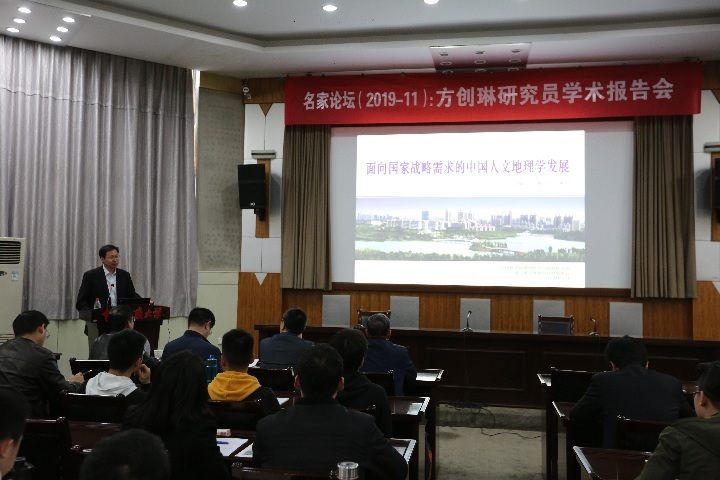 方创琳,中国科学院特聘二级研究员,中国科学院地理科学与资源研究所博士生导师,城市与区域规划研究中心主任。主要从事城市地理与城市发展、城市群及城镇化的资源环境效应等研究工作。他的报告题目为《面向国家战略需求的中国人文地理学发展》。通过对人文地理学的研究,分析了新时期中国人文地理学的研究与应用若干重大问题,最后从规划、区划、评价、决策咨询等方面指出了中国人文地理学的重点应用领域。