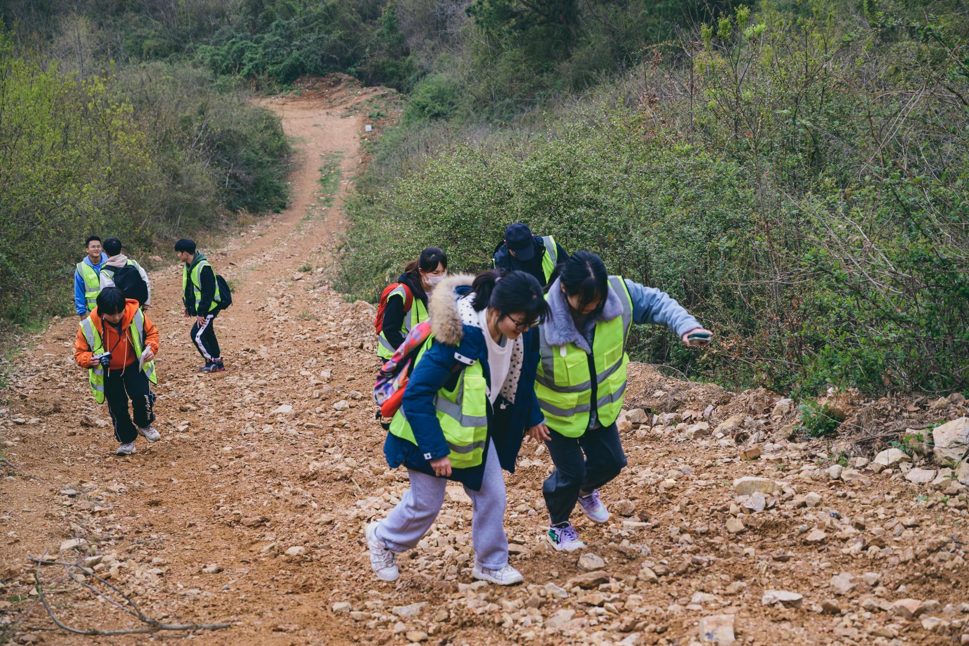 正值三月初春时节,山路经过雨水的洗礼,不仅陡峭而且较为泥泞,上山的过程异常艰难,但同学们怀着永不言弃的信念,彼此加油打气,互相帮助,共同攀爬长岭山。在山顶,同学们还一同唱起了磁力狗