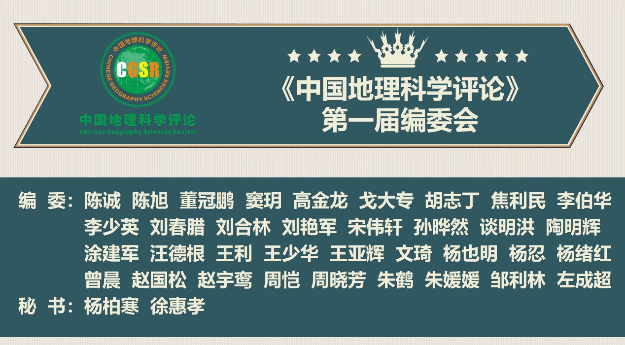 副院长宋小青教授共同担任,副主编由海南师范大学地理与环境科学学院副院长程叶青教授、西北师范大学地理与环境科学学院赵雪雁教授、南京大学地理与海洋科学学院钟太洋副教授担任。编委由来自国内外29所高校、院所的学者组成,包括陈诚副研究员(中国科学院南京地理与湖泊研究所)、陈旭教授(磁力狗