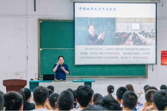 吴志峰院长按照地理学发展的进程、地理学的机遇与挑战等三个部分介绍了地理学科发展情况,将地理学的整体历史脉络铺展开来。吴志峰院长首先从东西方地理学视野出发,展示了地理学从经验科学到形成完整学科体系的过程,中国对世界地理学发展的贡献,给大家留下了深刻的印象。接着,吴院长对现代地理学的学科体系及研究对象进行解析,概括地介绍了当代地理研究的热点和方法,进一步引导在座师生进入地理学的学习和研究方向。而后,在介绍地理学的机遇与挑战的部分,吴院长从我国的地缘政治新挑战及我国进入新时代后的发展战略角度,介绍了地理学在为我国中国特色社会主义建设中起到的重要作用,并寄语地理系新生要有“德才兼备、家国情怀、开阔视野”。